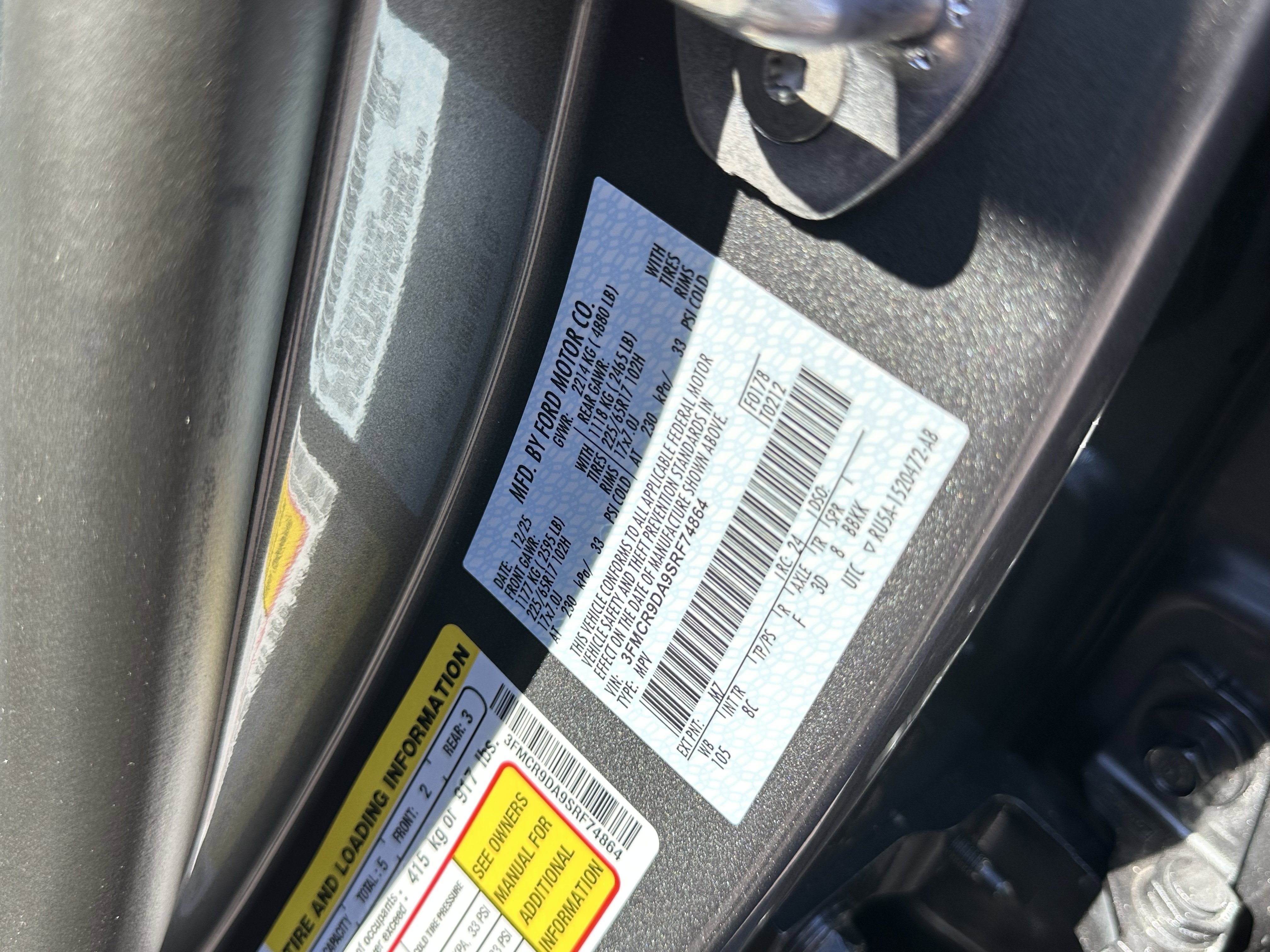 • VIN # 3FMCR9DA9SRF74864