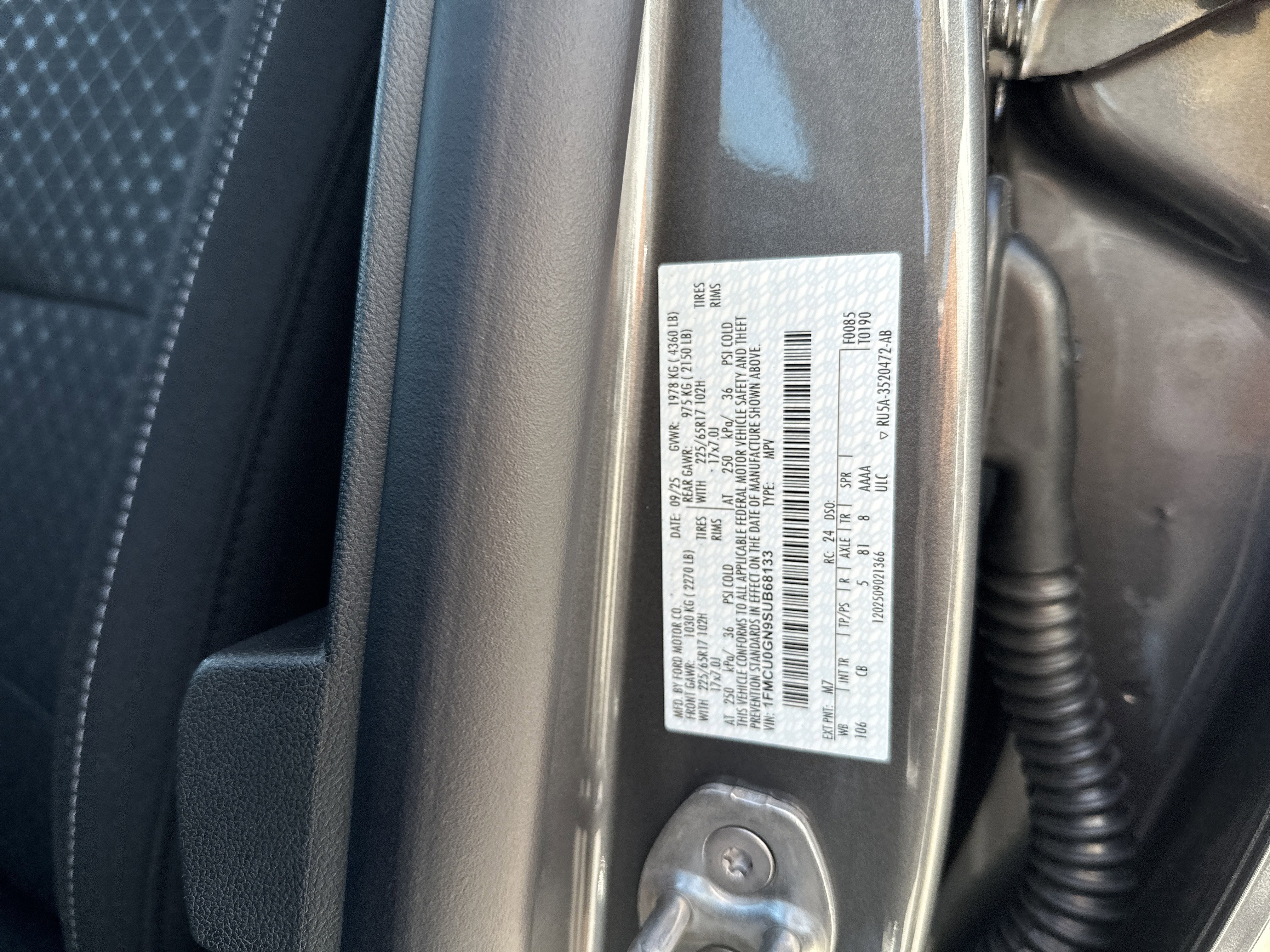 • VIN # 1FMCU0GN9SUB68133