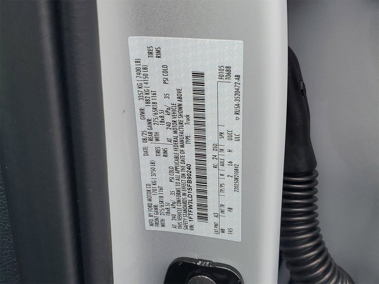 • VIN # 1FTFW3LD1SFB90240