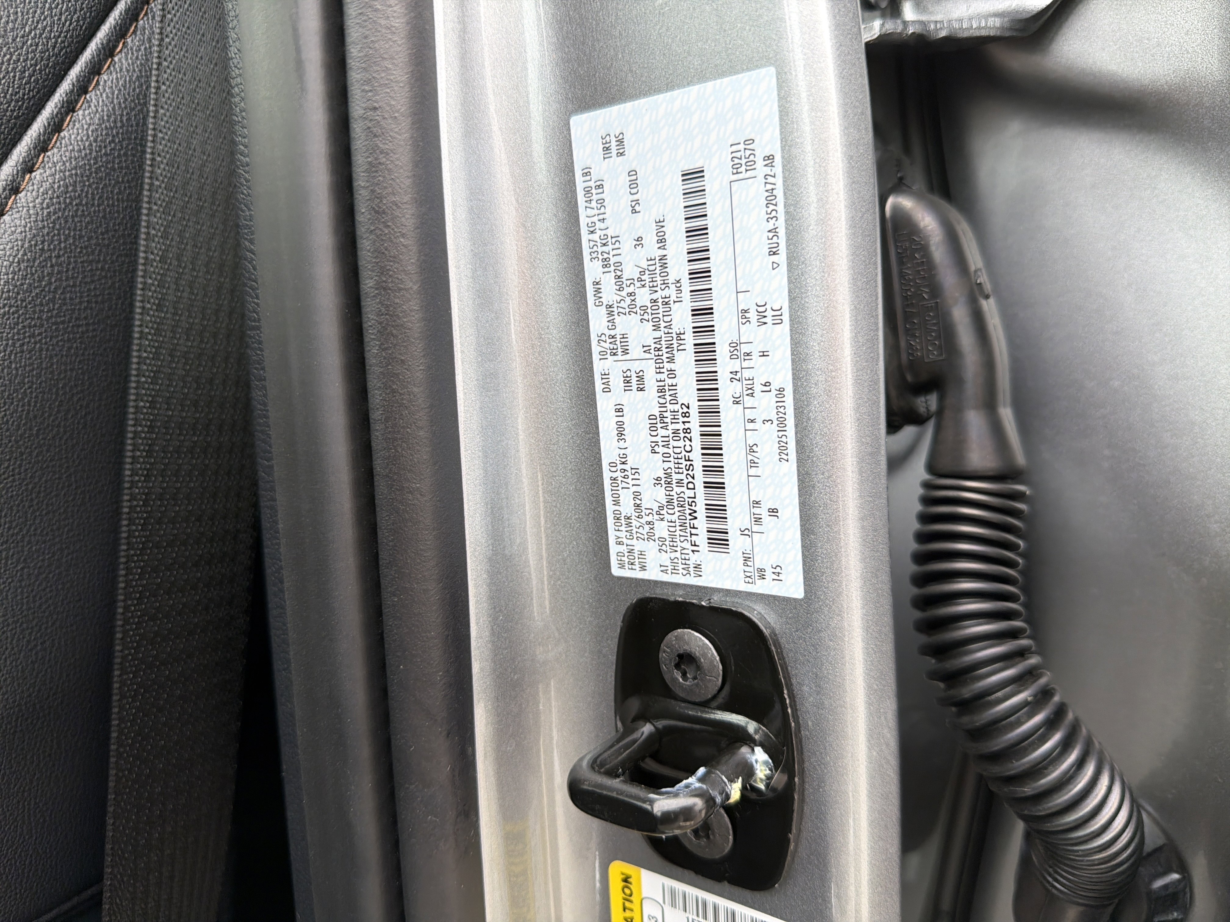 • VIN # 1FTFW5LD2SFC28182