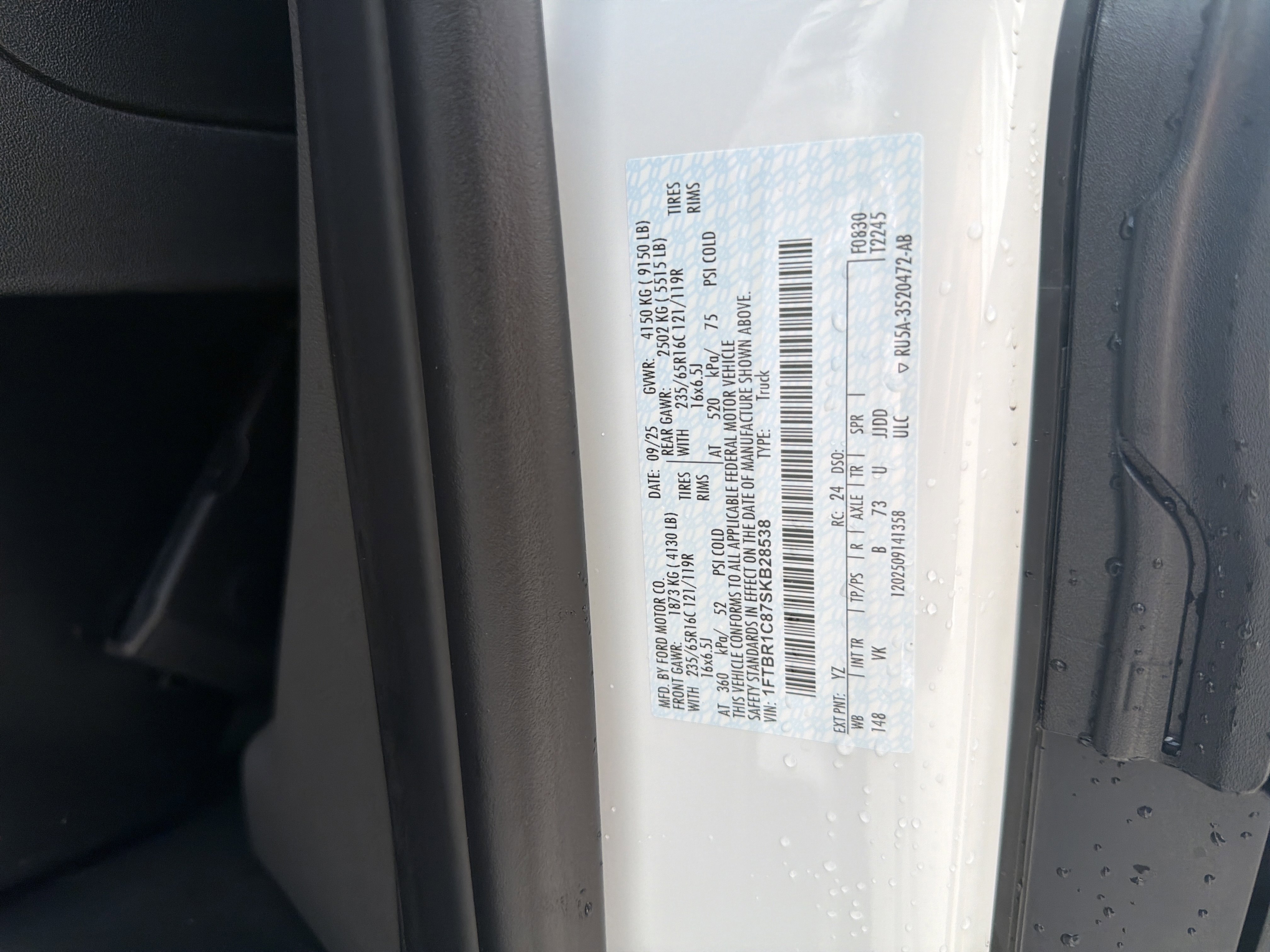 • VIN # 1FTBR1C87SKB28538
