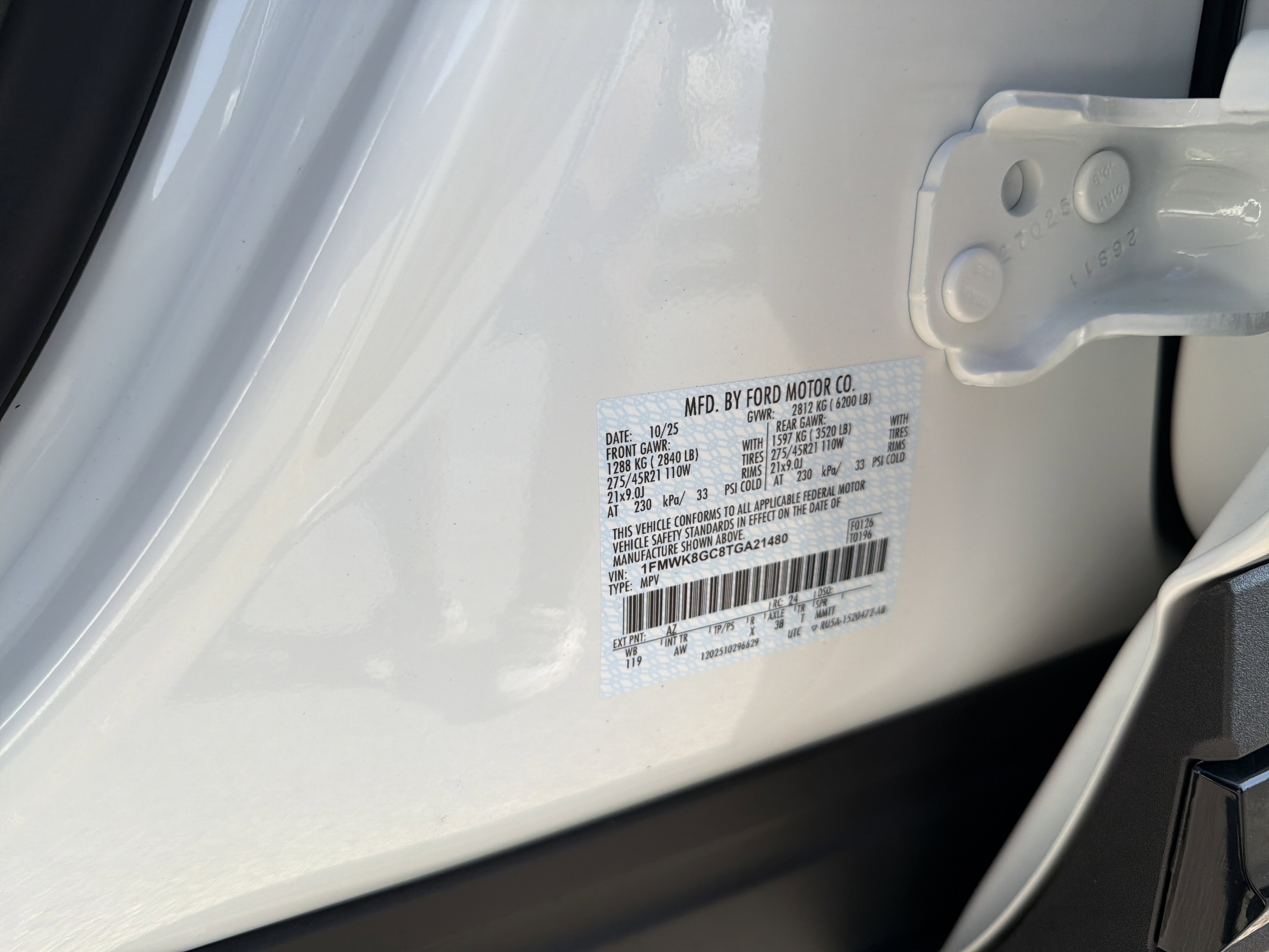 • VIN # 1FMWK8GC8TGA21480