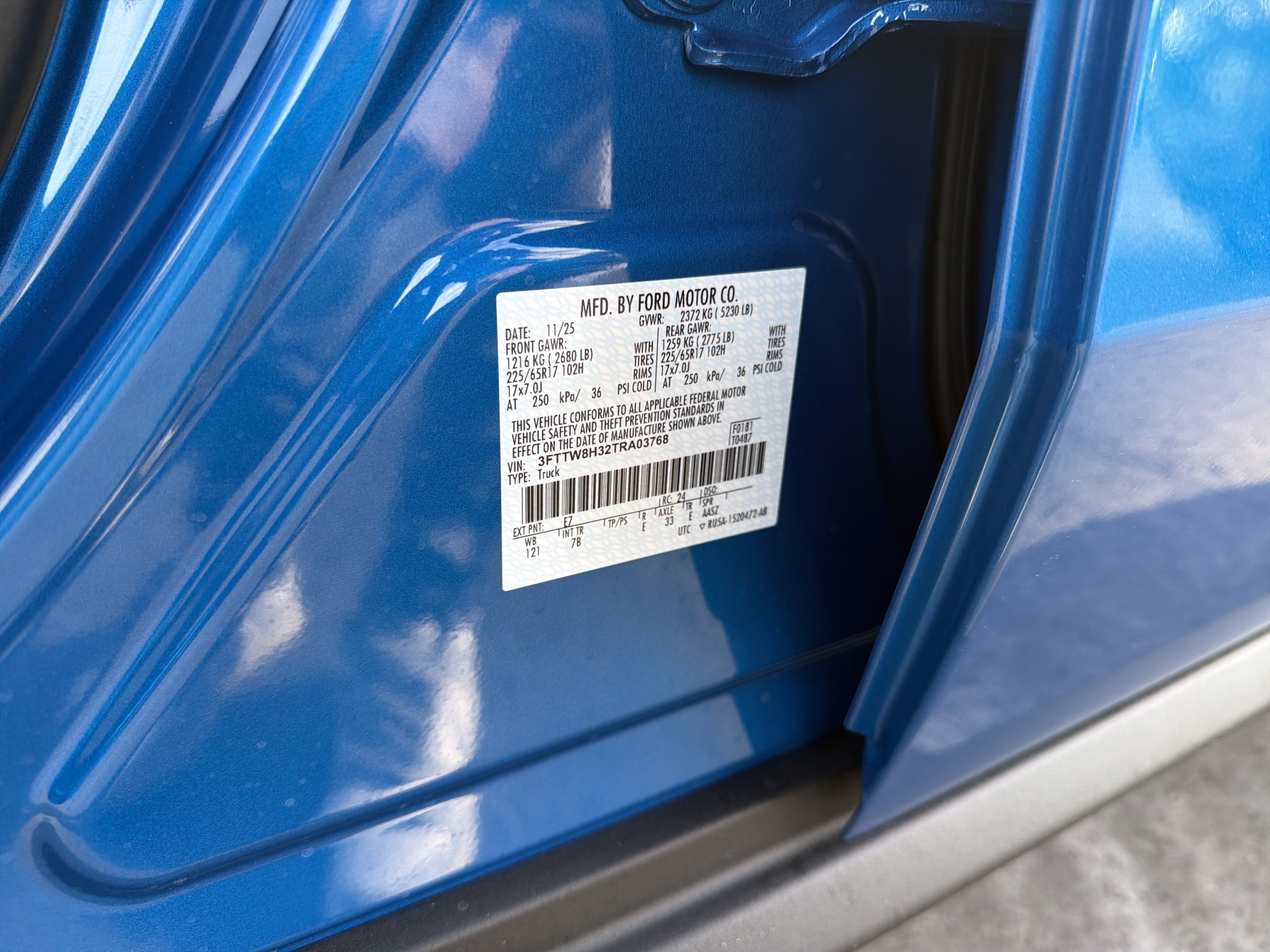• VIN # 3FTTW8H32TRA03768