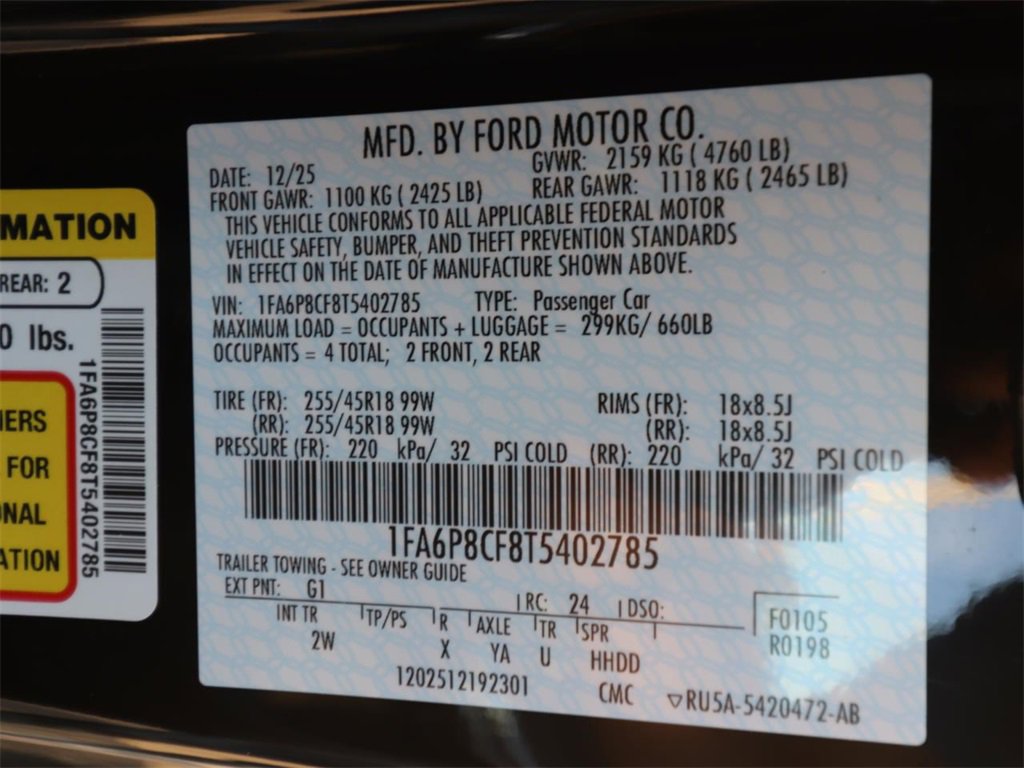 Shadow Black 2026 Ford Mustang GT RWD 10-Speed Automatic 5.0L V8 Ti-VCT
