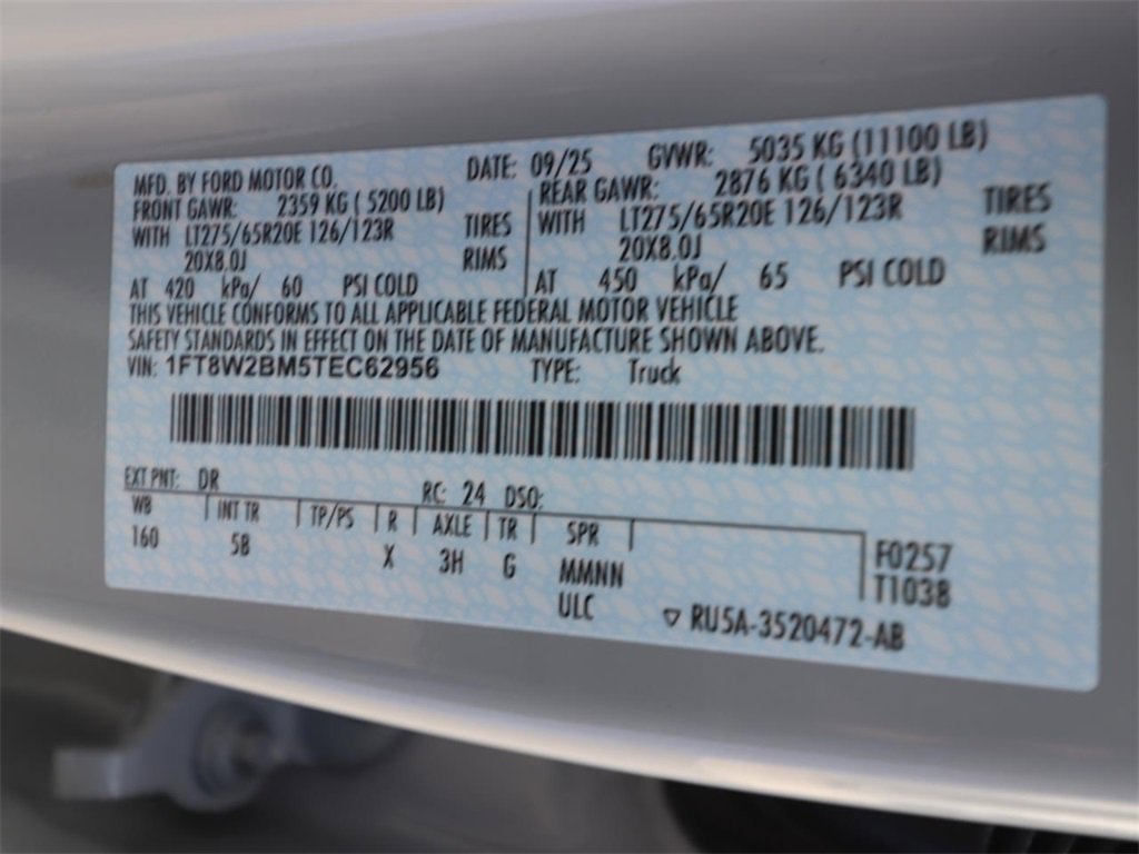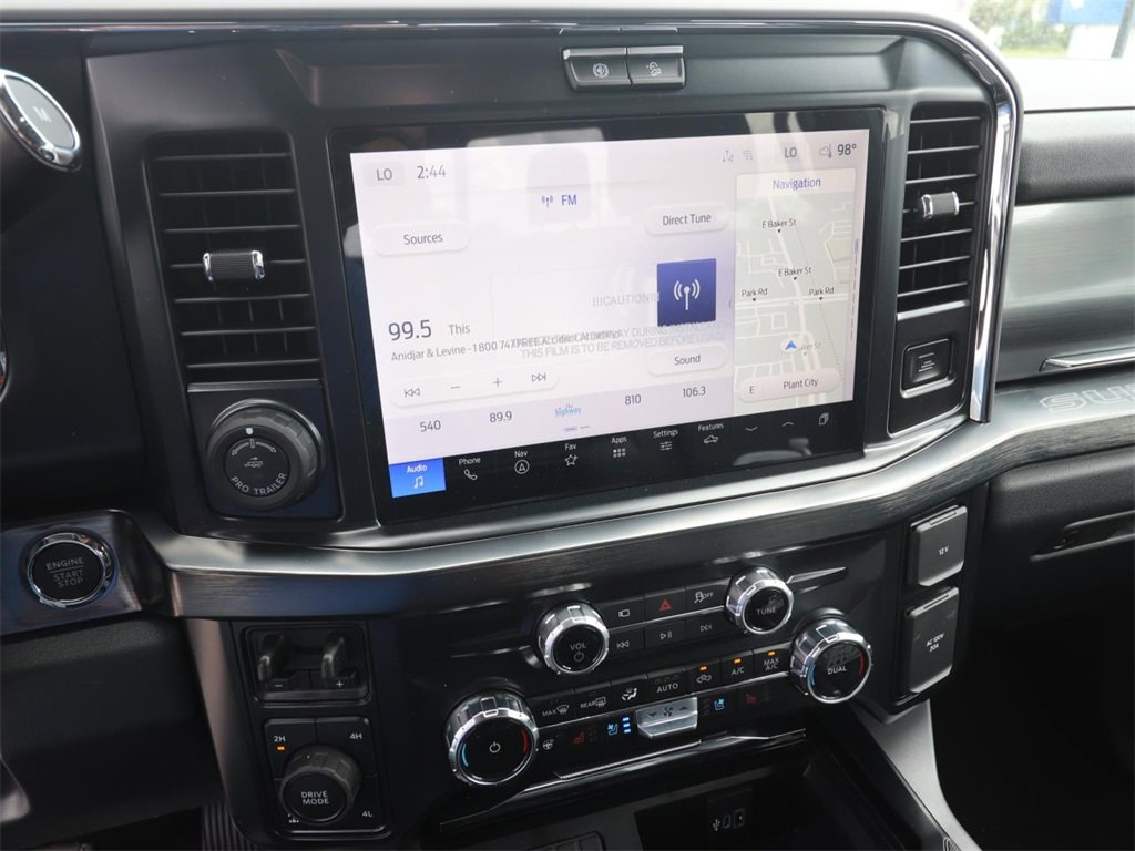 4WD, 5th Wheel/Gooseneck Hitch Prep Package, 6" Ebony Black Angular Running Boards, ABS brakes, Alloy wheels, Black Appearance Package, Black Painted Front Grille Surround, Body Color Front & Rear Bumpers, Compass, Ebony Black Painted Mirror Caps, Electronic Stability Control, Electronic-Locking w/3.31 Axle Ratio, Engine Block Heater, F-250 >10K GVWR Package, Ford Connectivity Pack (One-Time Purchase - 7 Yrs), Front dual zone A/C, FX4 Off-Road Package, Heated door mirrors, Heated front seats, Heated rear seats, Hill Descent Control, Illuminated entry, Lane Departure Warning System, Lariat Premium Package, Low tire pressure warning, Off-Road Specifically Tuned Shock Absorbers, Order Code 608A, Power-Sliding Rear-Window w/Defrost, Privacy Glass, Pro Power Onboard - 2kW, Pro Trailer Backup Assist, Pro Trailer Hitch Assist, Rear Wheel Well Liners (Pre-Installed), Remote keyless entry, SecuriCode Keyless Entry Keypad (Driver's Side), Tailgate Step & Handle, Tough Bed Spray-In Bedliner, Traction control, Unique FX4 Off-Road Box Decal, Upfitter Switches (6), Wheels: 20" Ebony Black High Gloss.