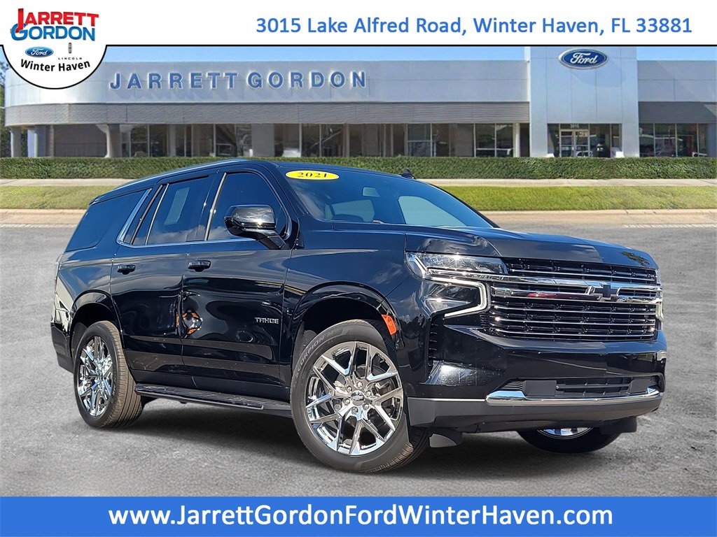 Priced below KBB Fair Purchase Price! ALLOY WHEELS, BACK UP CAMERA, BLUETOOTH, KEYLESS ENTRY, LEATHER SEATING, THIRD ROW SEATING, VOTED NUMBER 1 USED CAR DEALER IN THE STATE!, PREFERRED EQUIPMENT GROUP 1LT!!!, WON'T LAST!!!, Black Leather. Black 2021 Chevrolet Tahoe LT RWD 10-Speed Automatic with Overdrive EcoTec3 5.3L V8