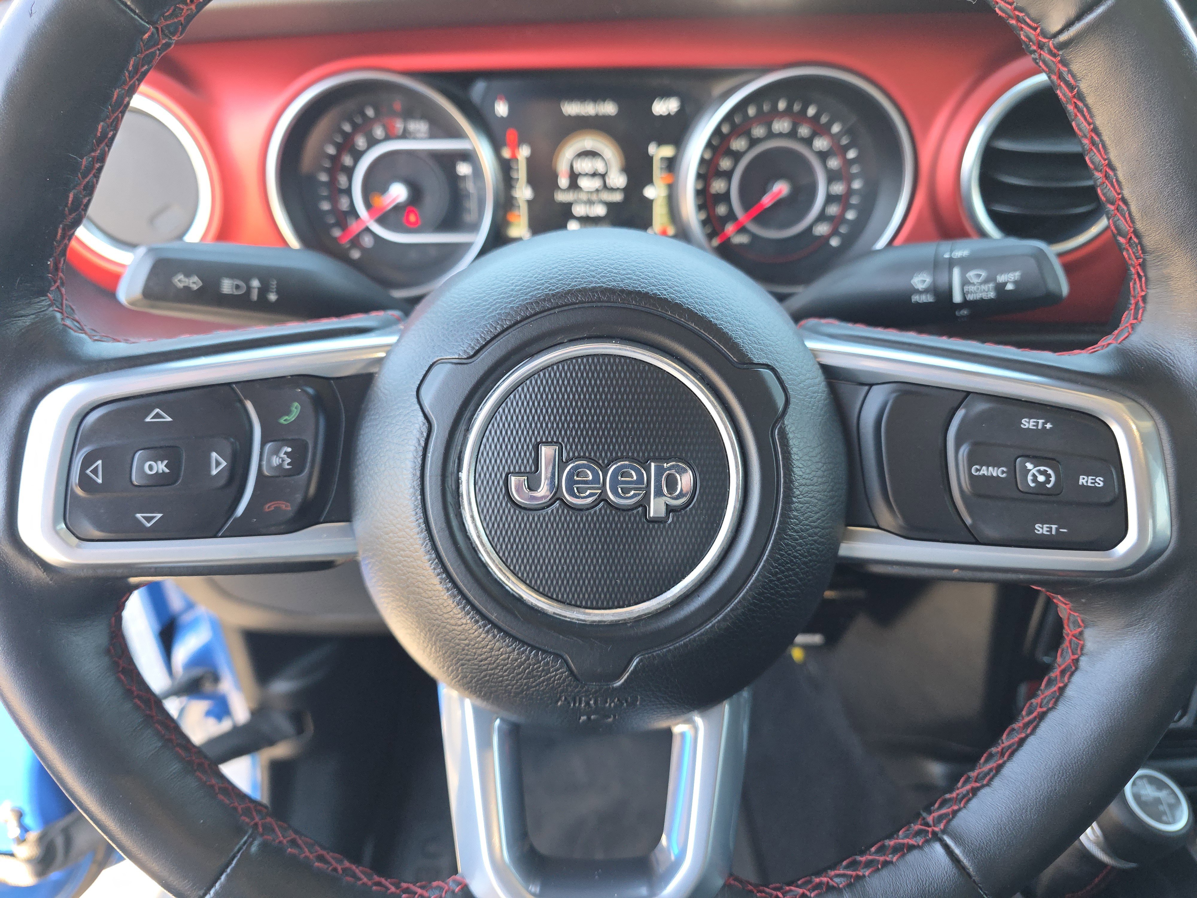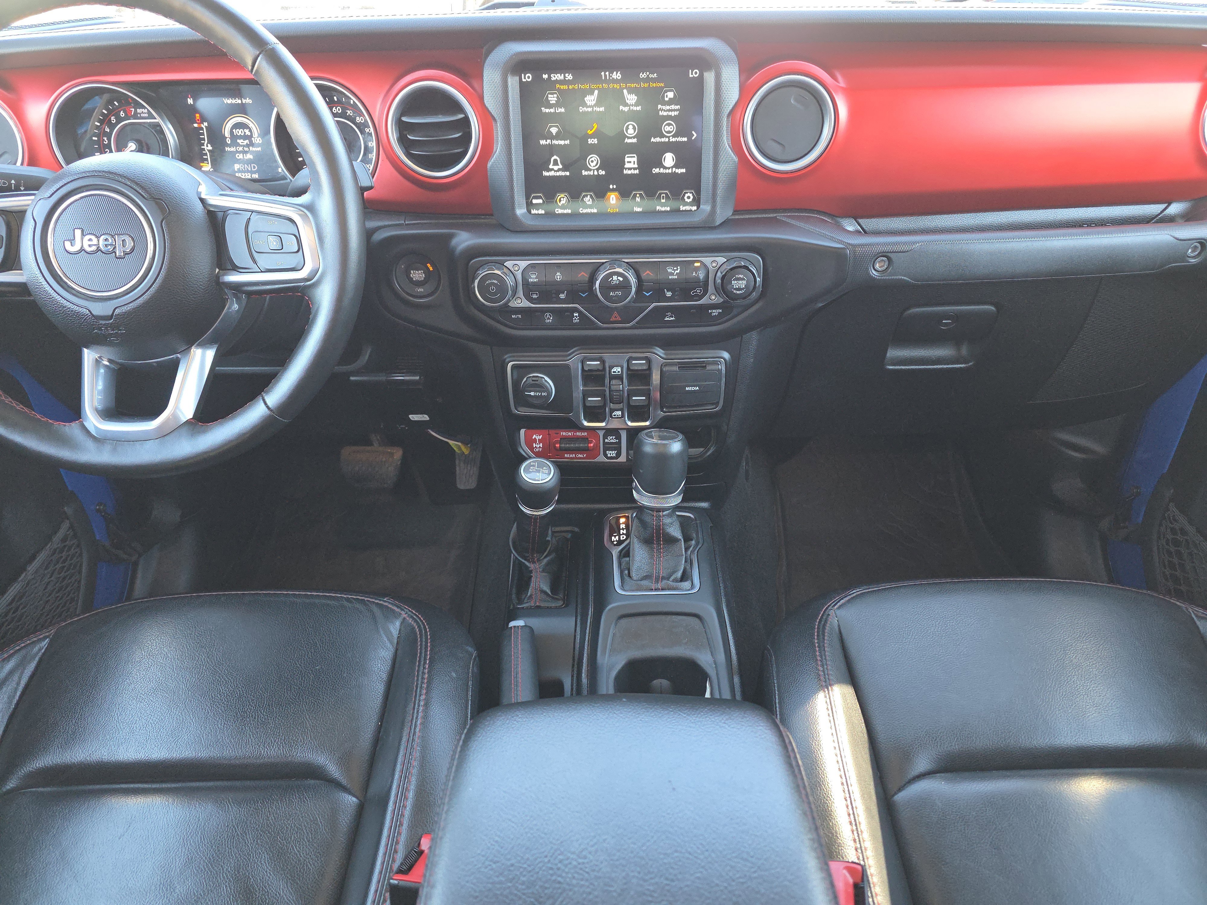 BALANCE OF FACTORY WARRANTY, 1-Year SiriusXM Guardian Trial, 240 Amp Alternator, 4-Wheel Disc Brakes, 4:1 Rock-Trac HD Full Time 4WD System, 4.10 Rear Axle Ratio, 5-Year SiriusXM Traffic Service, 5-Year SiriusXM Travel Link Service, 8 Speakers, 8.4 Radio & Premium Audio Group, 8.4 Touchscreen Display, 97 mph Maximum Speed Calibration, ABS brakes, Air Conditioning, Alloy wheels, Alpine Premium Audio System, AM/FM radio: SiriusXM, Apple CarPlay/Android Auto, Auto-Dimming Rear-View Mirror, Automatic temperature control, Black 3-Piece Hard Top, Body Color Fender Flares (2-Piece), Brake assist, Class IV Hitch Receiver, Cold Weather Group, Compass, Daytime Running Lamps LED Accents, Delay-off headlights, Driver door bin, Driver vanity mirror, Dual front impact airbags, Dual front side impact airbags, Electronic Stability Control, Emergency/Assistance Call, For Details, Visit DriveUconnect.com, Freedom Panel Storage Bag, Front anti-roll bar, Front Bucket Seats, Front Center Armrest w/Storage, Front dual zone A/C, Front fog lights, Front LED Fog Lamps, Front reading lights, Fully automatic headlights, Garage door transmitter, GPS Navigation, GVWR: 6,250 lbs w/Max Tow Package, HD Radio, Heated door mirrors, Heated Front Seats, Heated Steering Wheel, Heavy-Duty Engine Cooling, Illuminated entry, Integrated roll-over protection, Leather steering wheel, LED Lighting Group, LED Park Turn Lamps, LED Premium Reflector Headlamps, LED Taillamps, Low tire pressure warning, MOPAR All-Weather Floor Mats (DISC), MOPAR Hardtop Headliner, MOPAR Spray In Bedliner, Occupant sensing airbag, Outside temperature display, Panic alarm, ParkView Rear Back-Up Camera, Passenger door bin, Passenger vanity mirror, Performance Suspension, Power door mirrors, Power steering, Power windows, Premium Cloth Low-Back Bucket Seats, Quick Order Package 24R, Radio data system, Radio: Uconnect 4 w/7 Display, Radio: Uconnect 4C Nav w/8.4 Display, Rear anti-roll bar, Rear reading lights, Rear Sliding Window, Rear Window Defroster, Redical Instrument Panel Bezels, Remote keyless entry, Remote Start System, Security system, SiriusXM Traffic Plus, SiriusXM Travel Link, Speed control, Split folding rear seat, Steering wheel mounted audio controls, Tachometer, Telescoping steering wheel, Tilt steering wheel, Traction control, Trailer Hitch Zoom, Trailer Tow Package, Trip computer, Variably intermittent wipers, Voltmeter, Wheels: 17 x 7.5 Granite Crystal Aluminum, Wheels: 17 x 7.5 Polished Black Aluminum.