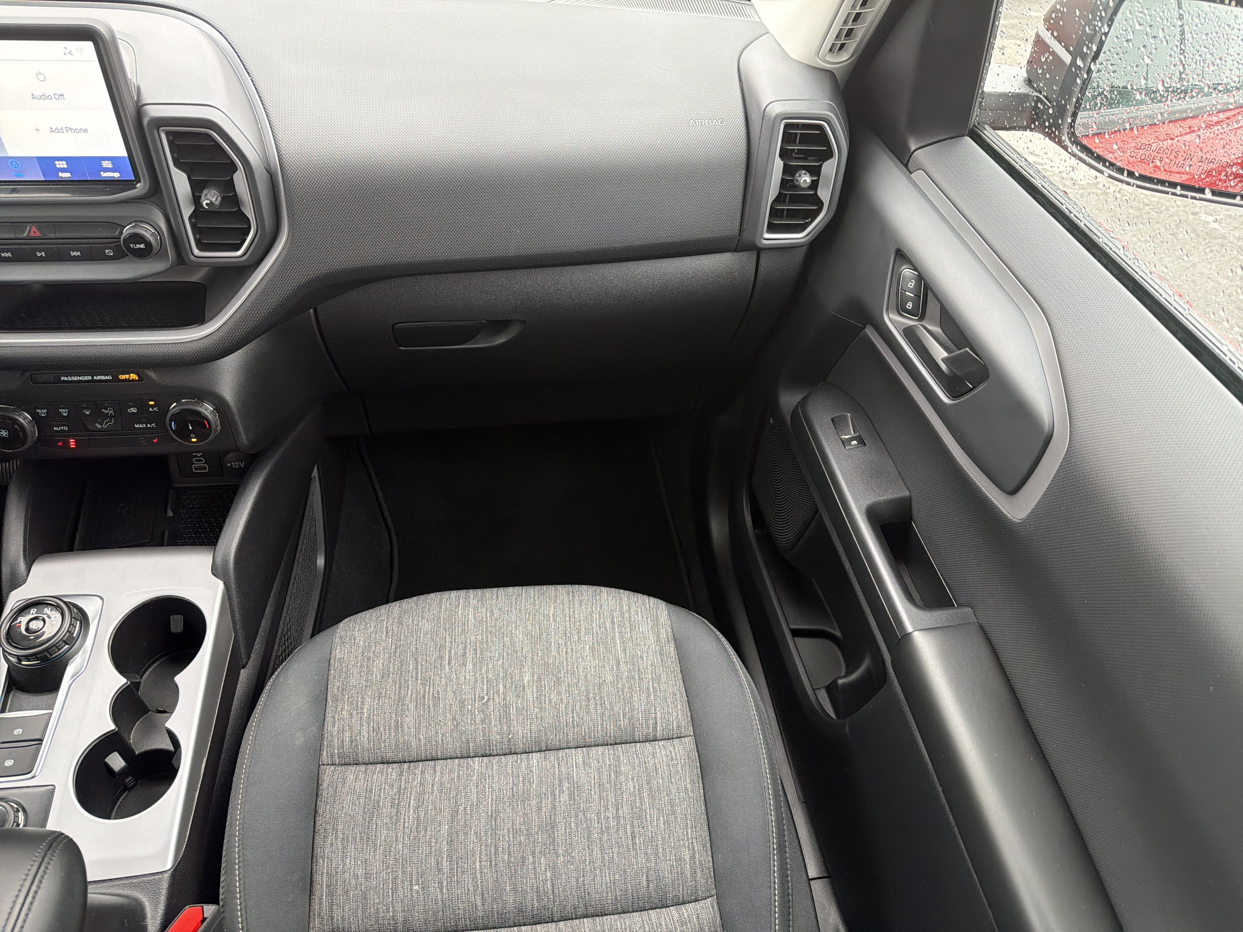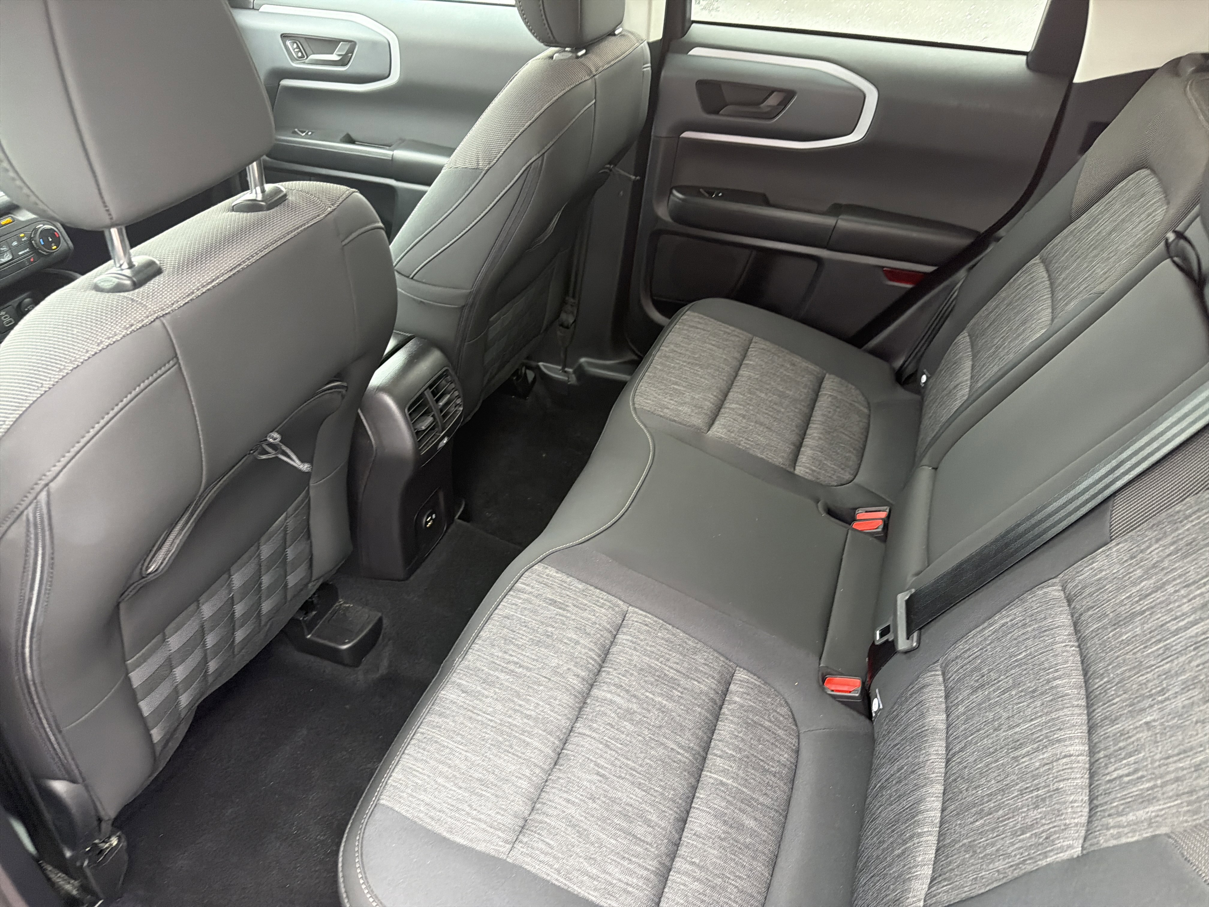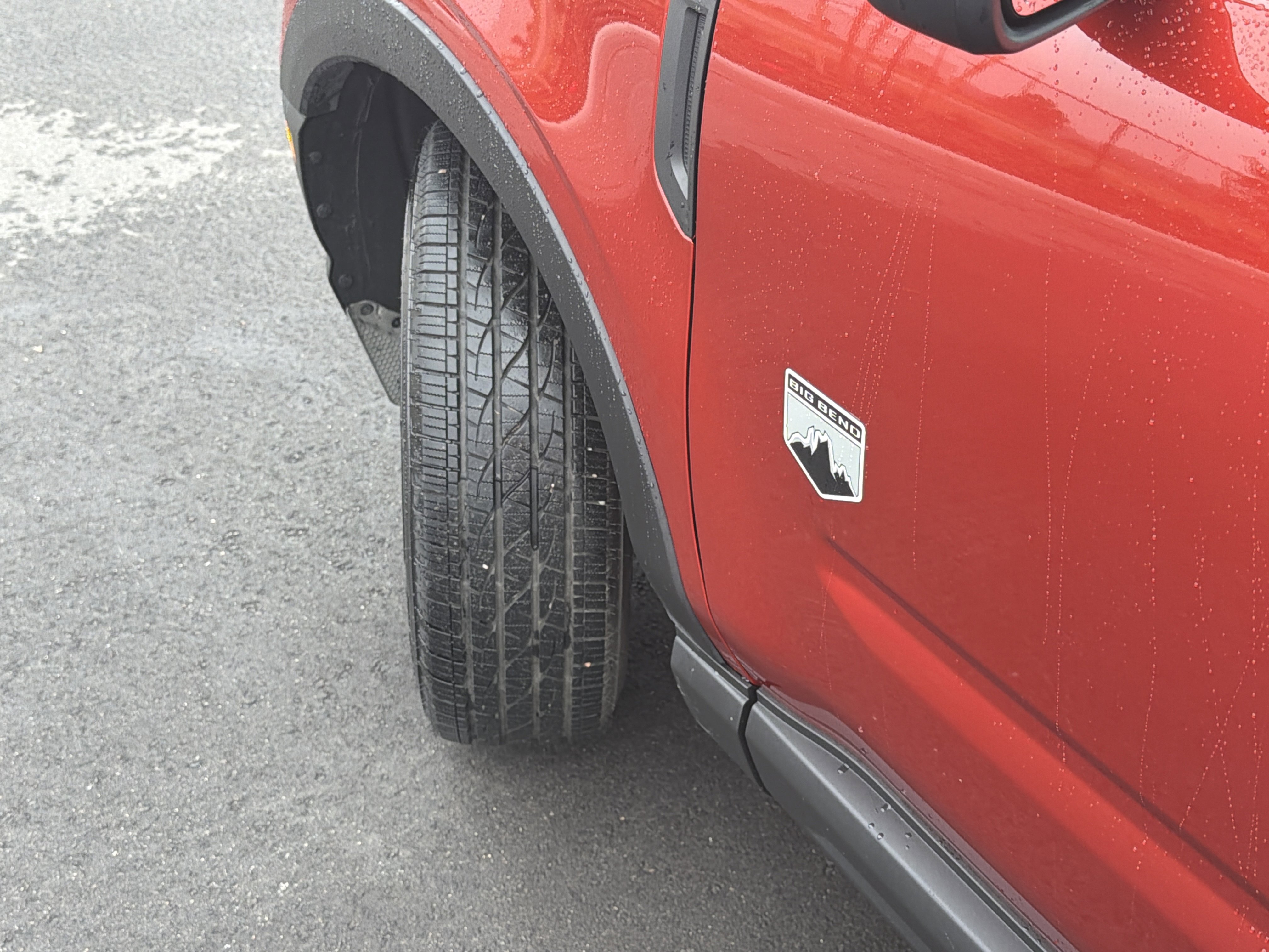 Hot Pepper Red Tinted Clearcoat 2023 Ford Bronco Sport Big Bend 4WD 8-Speed Automatic 1.5L EcoBoost 3.80 Axle Ratio, 4-Wheel Disc Brakes, 4G LTE Wi-Fi Hotspot Credit, 6 Speakers, ABS brakes, Air Conditioning, AM/FM radio: SiriusXM, AM/FM Stereo, Auto High-beam Headlights, Automatic temperature control, Brake assist, Compass, Convenience Package, Delay-off headlights, Driver door bin, Driver vanity mirror, Dual front impact airbags, Dual front side impact airbags, Electronic Stability Control, Emergency communication system: SYNC 3 911 Assist, Equipment Group 200A, Evasive Steering Assist, Ford Co-Pilot360 Assist+, Four wheel independent suspension, Front anti-roll bar, Front Bucket Seats, Front Center Armrest, Front Driver & Passenger Seatback Zipper Pockets, Front reading lights, Fully automatic headlights, Heated door mirrors, Heated Front Bucket Seats, Illuminated entry, Intelligent Access (Lock/Unlock), Intelligent Adaptive Cruise Control w/Stop & Go, Knee airbag, Leather-Wrapped Steering Wheel, LED Fog Lamps, Low tire pressure warning, Occupant sensing airbag, Outside temperature display, Overhead airbag, Overhead console, Panic alarm, Passenger door bin, Passenger vanity mirror, Power door mirrors, Power Moonroof, Power steering, Power windows, Radio data system, Rear anti-roll bar, Rear Parking Sensors, Rear reading lights, Rear seat center armrest, Rear window defroster, Rear window wiper, Remote keyless entry, Security system, SiriusXM, Speed control, Speed-sensing steering, Speed-Sensitive Wipers, Split folding rear seat, Steering wheel mounted audio controls, SYNC 3 Communications & Entertainment System, SYNC 3/Apple CarPlay/Android Auto, Tachometer, Telescoping steering wheel, Tilt steering wheel, Traction control, Trip computer, Unique Cloth Front Bucket Seats, Universal Garage Door Opener (UGDO), Variably intermittent wipers, Voice-Activated Touchscreen Navigation System, Wheels: 17 Carbonized Gray-Painted Aluminum, Wireless Charging Pad.