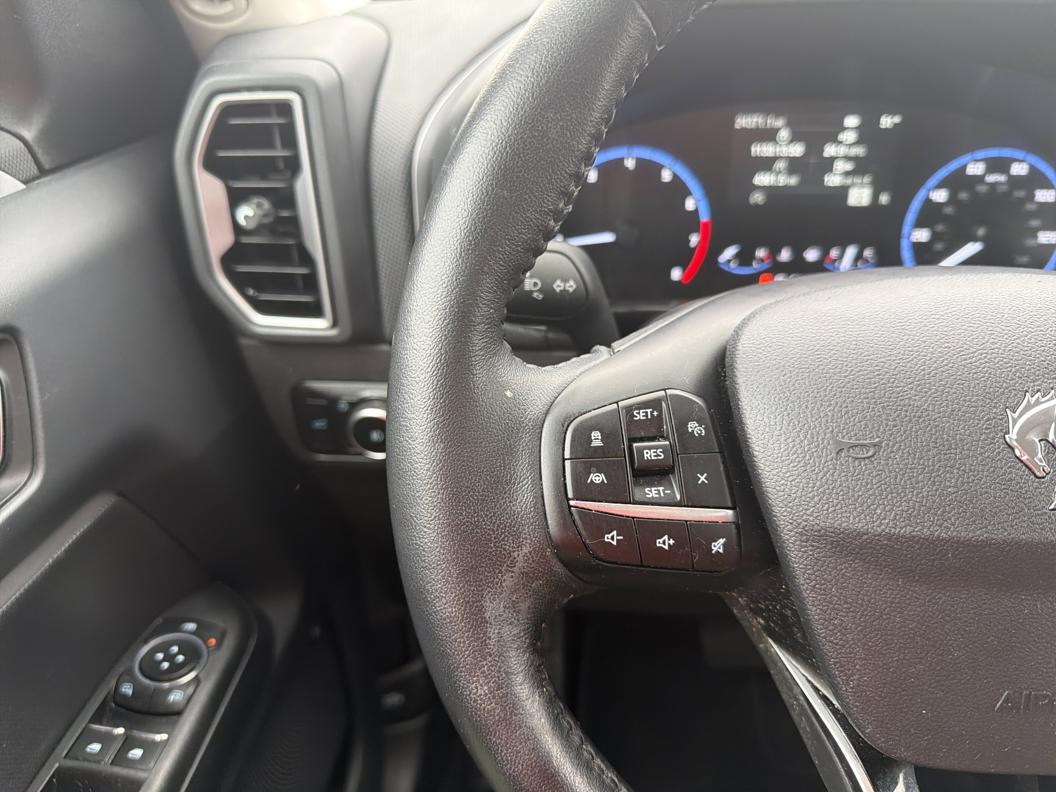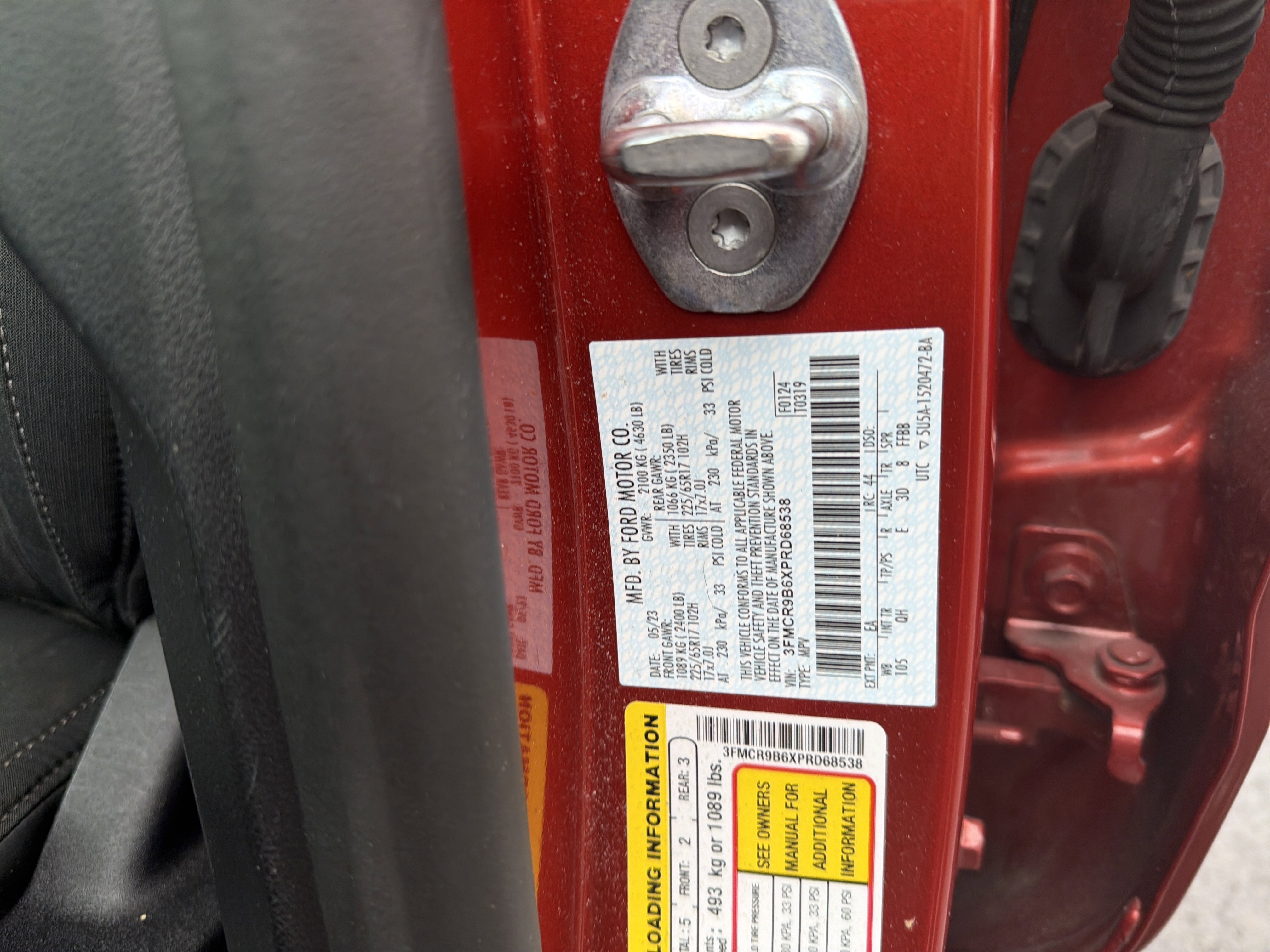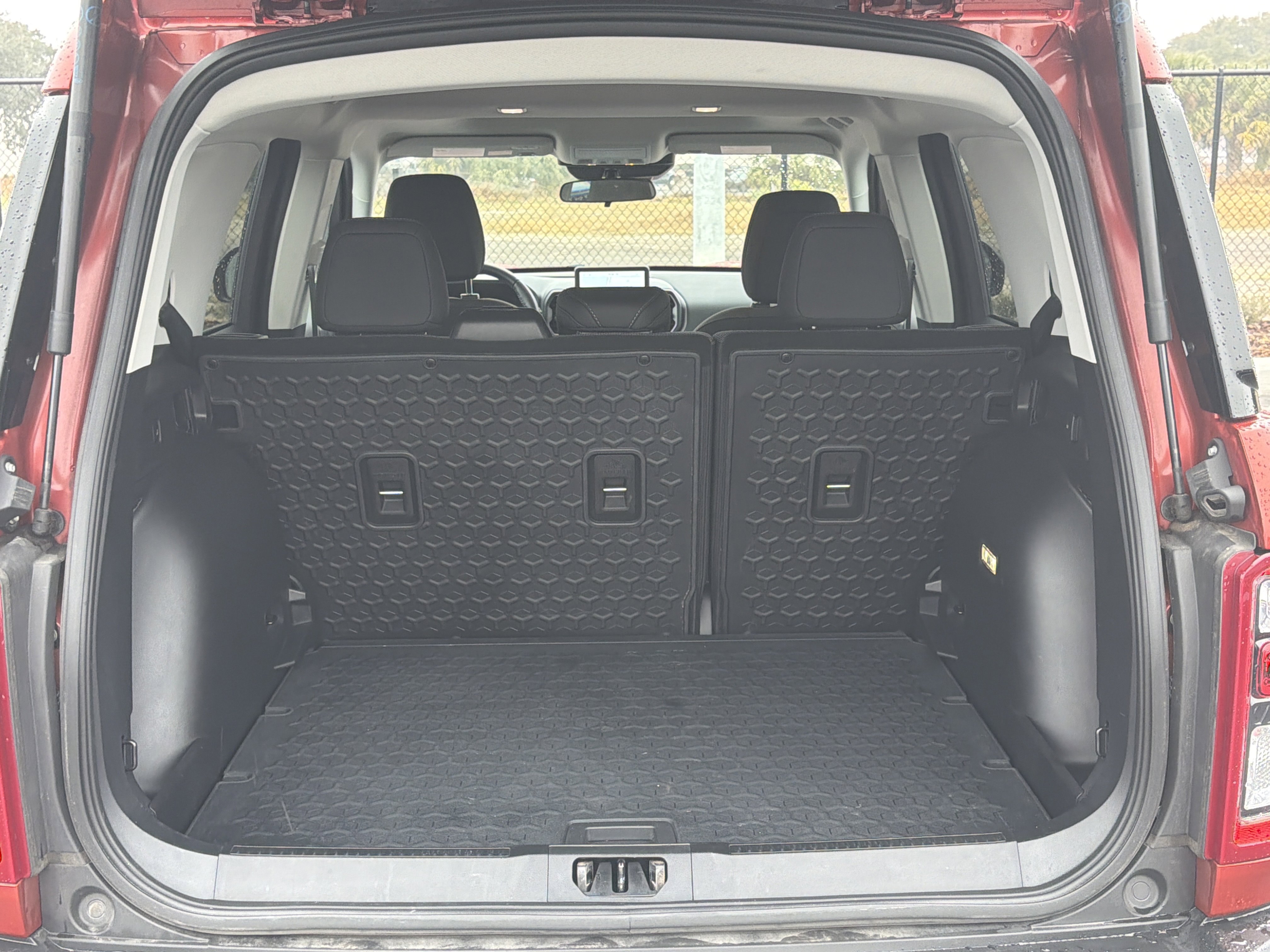 Hot Pepper Red Tinted Clearcoat 2023 Ford Bronco Sport Big Bend 4WD 8-Speed Automatic 1.5L EcoBoost 3.80 Axle Ratio, 4-Wheel Disc Brakes, 4G LTE Wi-Fi Hotspot Credit, 6 Speakers, ABS brakes, Air Conditioning, AM/FM radio: SiriusXM, AM/FM Stereo, Auto High-beam Headlights, Automatic temperature control, Brake assist, Compass, Convenience Package, Delay-off headlights, Driver door bin, Driver vanity mirror, Dual front impact airbags, Dual front side impact airbags, Electronic Stability Control, Emergency communication system: SYNC 3 911 Assist, Equipment Group 200A, Evasive Steering Assist, Ford Co-Pilot360 Assist+, Four wheel independent suspension, Front anti-roll bar, Front Bucket Seats, Front Center Armrest, Front Driver & Passenger Seatback Zipper Pockets, Front reading lights, Fully automatic headlights, Heated door mirrors, Heated Front Bucket Seats, Illuminated entry, Intelligent Access (Lock/Unlock), Intelligent Adaptive Cruise Control w/Stop & Go, Knee airbag, Leather-Wrapped Steering Wheel, LED Fog Lamps, Low tire pressure warning, Occupant sensing airbag, Outside temperature display, Overhead airbag, Overhead console, Panic alarm, Passenger door bin, Passenger vanity mirror, Power door mirrors, Power Moonroof, Power steering, Power windows, Radio data system, Rear anti-roll bar, Rear Parking Sensors, Rear reading lights, Rear seat center armrest, Rear window defroster, Rear window wiper, Remote keyless entry, Security system, SiriusXM, Speed control, Speed-sensing steering, Speed-Sensitive Wipers, Split folding rear seat, Steering wheel mounted audio controls, SYNC 3 Communications & Entertainment System, SYNC 3/Apple CarPlay/Android Auto, Tachometer, Telescoping steering wheel, Tilt steering wheel, Traction control, Trip computer, Unique Cloth Front Bucket Seats, Universal Garage Door Opener (UGDO), Variably intermittent wipers, Voice-Activated Touchscreen Navigation System, Wheels: 17 Carbonized Gray-Painted Aluminum, Wireless Charging Pad.