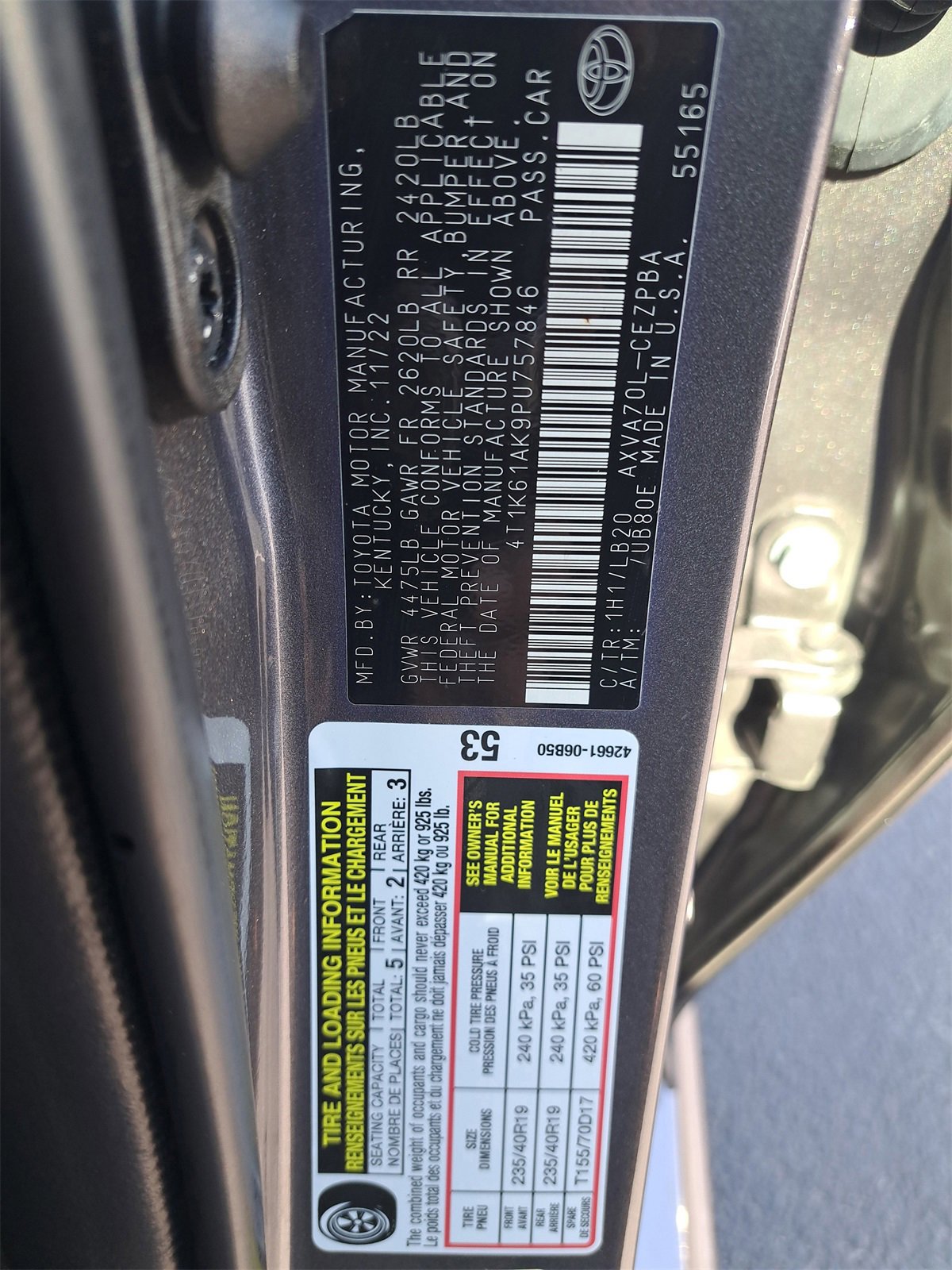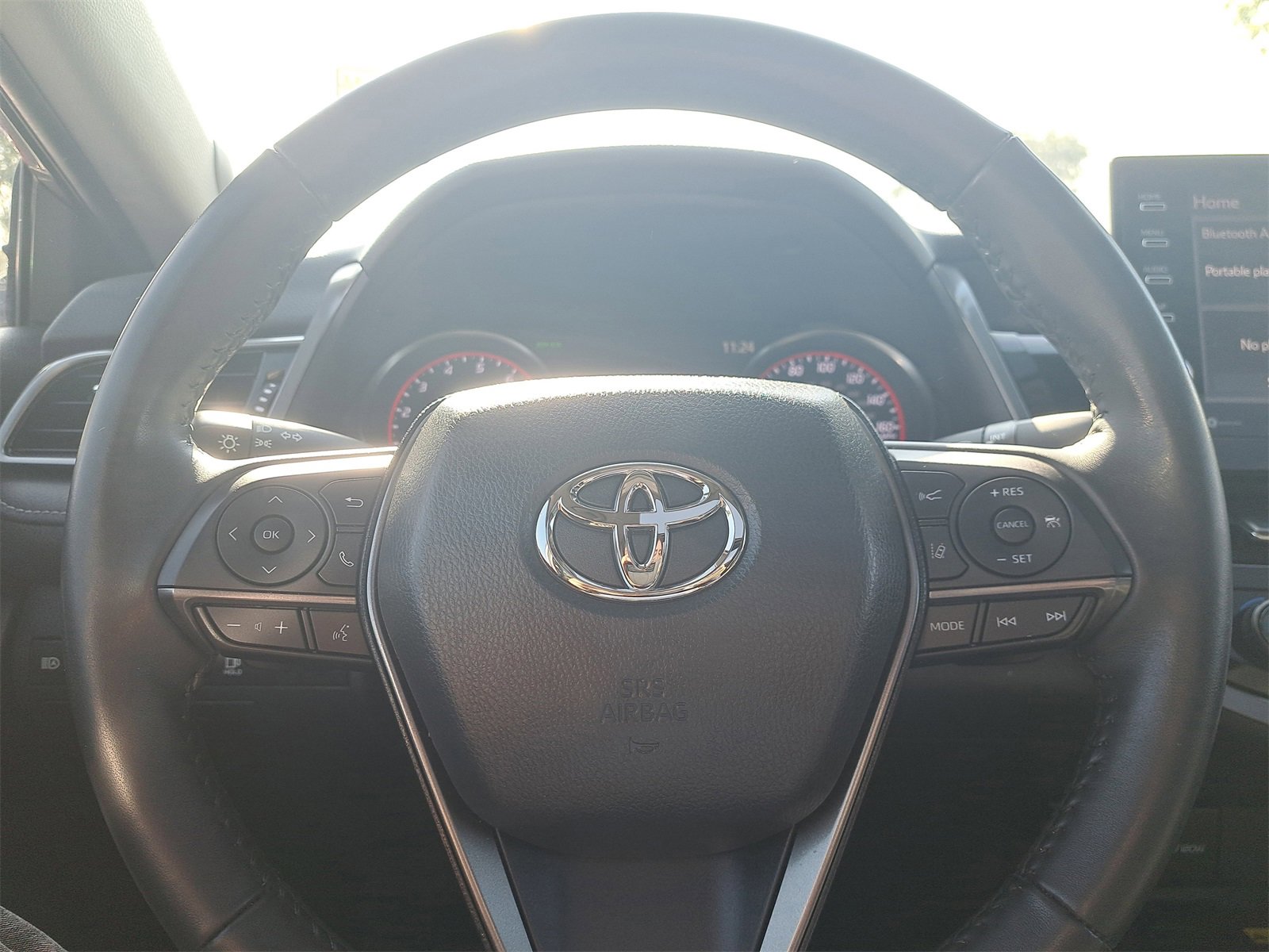 CLEAN VEHICLE HISTORY REPORT!, ONE OWNER VEHICLE!, FULLY INSPECTED!, BALANCE OF FACTORY WARRANTY, Camry XSE, 4-Wheel Disc Brakes, 6 Speakers, ABS brakes, Air Conditioning, Alloy wheels, AM/FM radio: SiriusXM, Apple CarPlay/Android Auto, Auto High-beam Headlights, Auto-dimming Rear-View mirror, Automatic temperature control, Brake assist, Bumpers: body-color, Delay-off headlights, Driver door bin, Driver vanity mirror, Dual front impact airbags, Dual front side impact airbags, Electronic Stability Control, Emergency communication system: Safety Connect (1-year trial), Exterior Parking Camera Rear, Four wheel independent suspension, Front anti-roll bar, Front Bucket Seats, Front Center Armrest, Front dual zone A/C, Front reading lights, Fully automatic headlights, Garage door transmitter: HomeLink, Heated door mirrors, Heated front seats, Illuminated entry, Knee airbag, Leather steering wheel, Low tire pressure warning, Multi-Stage Heated Front Bucket Seats, Occupant sensing airbag, Outside temperature display, Overhead airbag, Overhead console, Panic alarm, Passenger door bin, Passenger vanity mirror, Perforated Leather Seat Trim, Power door mirrors, Power driver seat, Power passenger seat, Power steering, Power windows, Radio data system, Radio: Audio Plus, Rear anti-roll bar, Rear reading lights, Rear seat center armrest, Rear side impact airbag, Rear window defroster, Remote keyless entry, Security system, Speed control, Speed-sensing steering, Split folding rear seat, Spoiler, Steering wheel mounted audio controls, Tachometer, Telescoping steering wheel, Tilt steering wheel, Traction control, Trip computer, Turn signal indicator mirrors, Variably intermittent wipers, Wheels: 8.0J x 19 Alloy, Camry XSE.