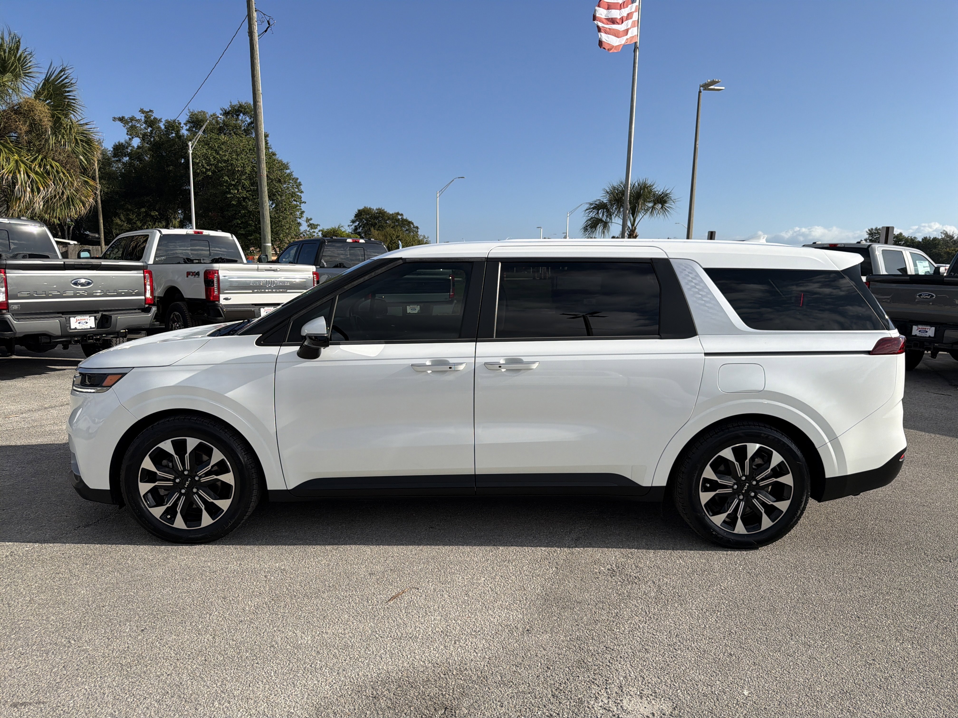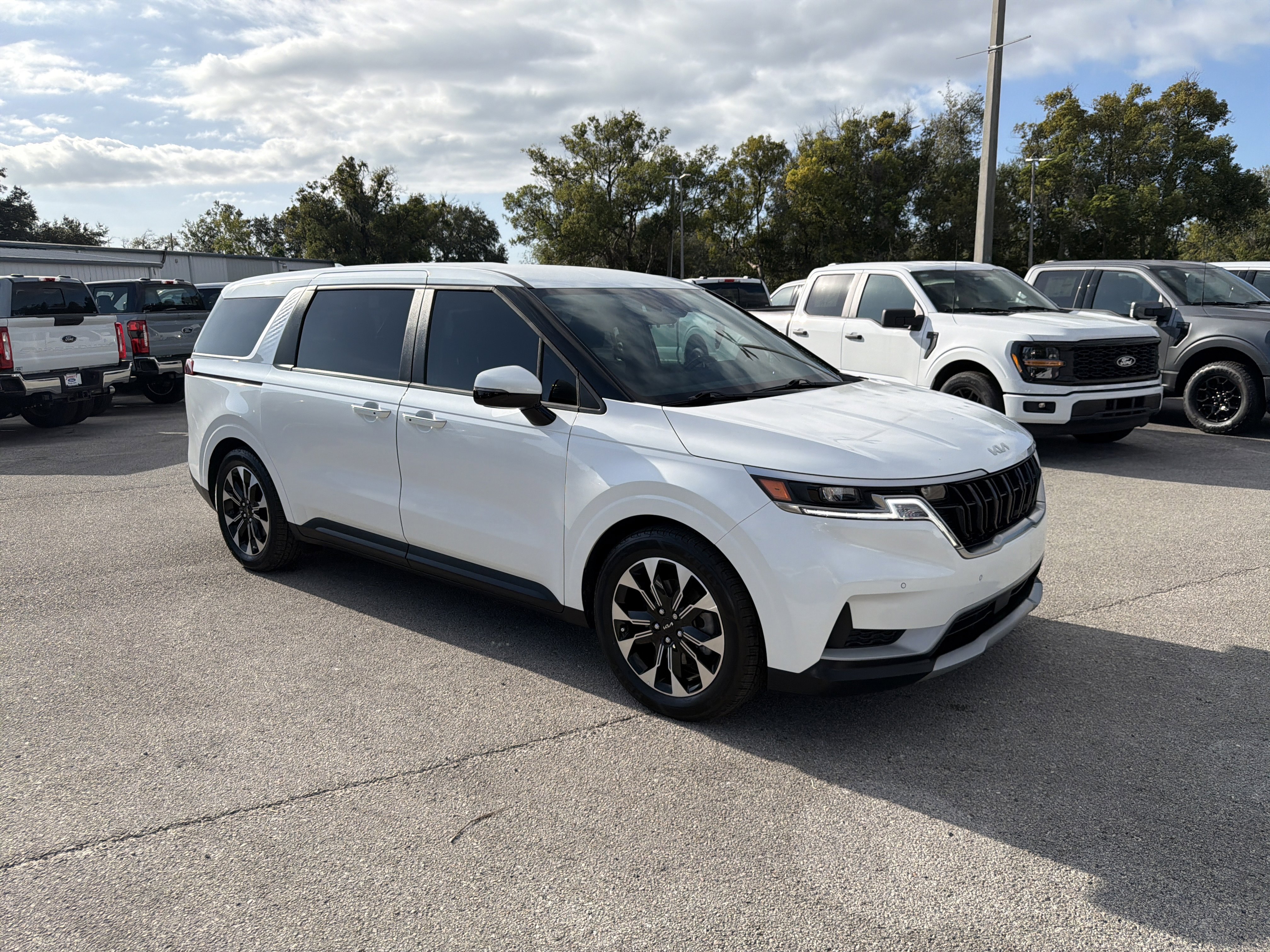 Certified. Snow White Pearl 2024 Kia Carnival EX FWD 8-Speed Automatic V6 ALLOY WHEELS, BACK UP CAMERA, BLUETOOTH, 10 Speakers, 3.51 Axle Ratio, 3rd row seats: split-bench, 4-Wheel Disc Brakes, ABS brakes, Air Conditioning, AM/FM radio: SiriusXM, Apple CarPlay & Android Auto, Artificial Leather Seat Trim, Auto High-beam Headlights, Automatic temperature control, Brake assist, Bumpers: body-color, Carpeted Floor Mats (8-Passenger), Compass, Delay-off headlights, Driver door bin, Driver vanity mirror, Dual front impact airbags, Dual front side impact airbags, Electronic Stability Control, Emergency communication system, Four wheel independent suspension, Front anti-roll bar, Front Bucket Seats, Front Center Armrest, Front dual zone A/C, Front reading lights, Fully automatic headlights, Heated door mirrors, Heated Front Bucket Seats, Heated front seats, Illuminated entry, Knee airbag, Leather Shift Knob, Leather steering wheel, Low tire pressure warning, Navigation System, Occupant sensing airbag, Outside temperature display, Overhead airbag, Overhead console, Panic alarm, Passenger door bin, Passenger vanity mirror, Power door mirrors, Power driver seat, Power steering, Power windows, Radio: AM/FM/HD Audio System, Rear air conditioning, Rear anti-roll bar, Rear reading lights, Rear window defroster, Rear window wiper, Reclining 3rd row seat, Remote keyless entry, Security system, Speed control, Speed-sensing steering, Split folding rear seat, Spoiler, Steering wheel mounted audio controls, Tachometer, Telescoping steering wheel, Tilt steering wheel, Traction control, Trip computer, Turn signal indicator mirrors, Variably intermittent wipers, Wheels: 7.5J x 19 Machine-Finished Alloy.
