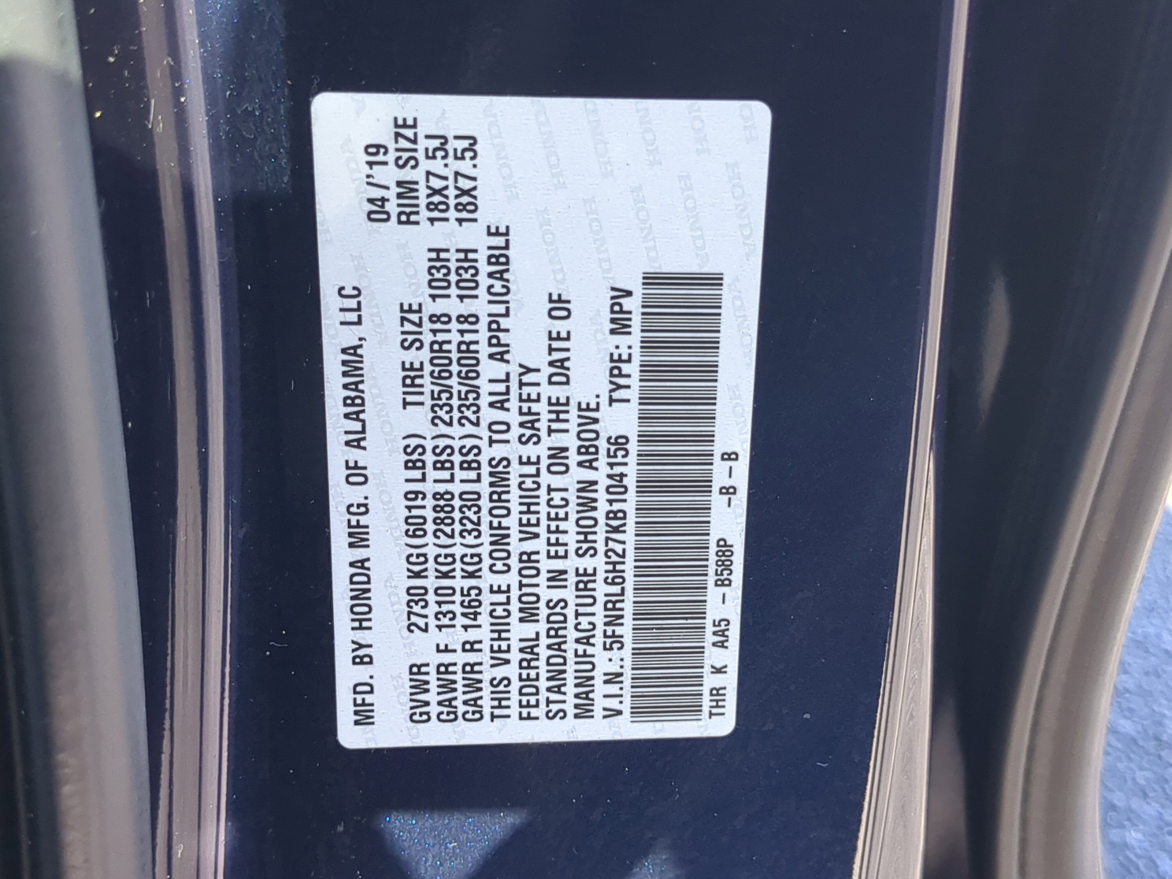 Obsidian Blue Pearl 2019 Honda Odyssey LX FWD 3.5L V6 SOHC i-VTEC 24V 9-Speed Automatic