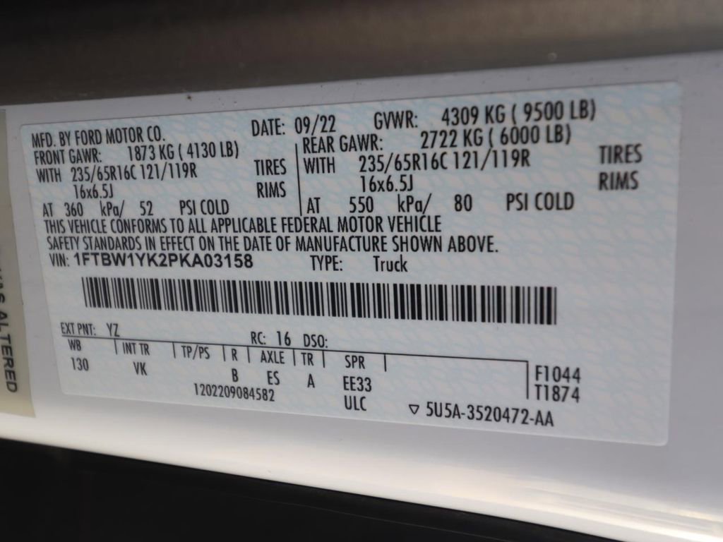 • VIN # 1FTBW1YK2PKA03158